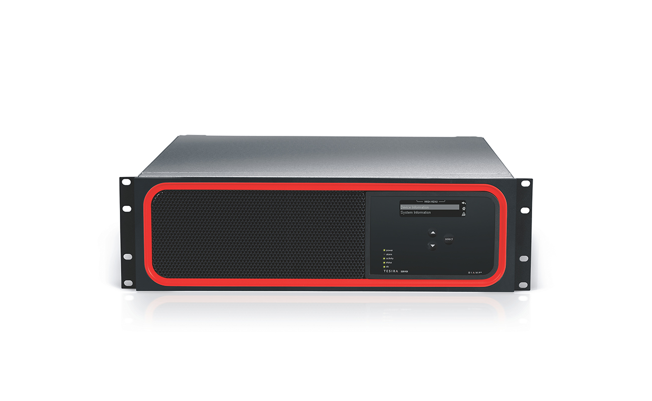 Tesira? SERVER是一臺數(shù)字網(wǎng)絡(luò)服務(wù)器,應(yīng)用于Tesira數(shù)字音頻網(wǎng)絡(luò)平臺。通常,SERVER配有一塊DSP插卡,并可再增7塊DSP插卡。在數(shù)字音頻網(wǎng)絡(luò)中,SERVER可配置兩種網(wǎng)絡(luò)卡,AVB或CobraNet?,并能以任意形式進行組合。集成的網(wǎng)絡(luò)卡可提供冗余網(wǎng)絡(luò)連接用于Tesira網(wǎng)絡(luò)的配置和控制,以及GPIO連接。Tesira標準輸入/輸出卡適用于近距離的本地安裝。DSP模塊采用了Biamp的兩項新算法SpeechSenseTM(語音觸發(fā)技術(shù))和AmbientSenseTM(環(huán)境觸發(fā)技術(shù)),每項設(shè)計都增強了對人聲的處理,以準確區(qū)別判斷人聲和環(huán)境噪聲。DSP同時提供大量的音頻處理功能,包括但不僅限于:信號路由分配和混音、均衡、濾波、動態(tài)、延遲、控制、監(jiān)視和診斷工具。所有處理通過Tesira設(shè)計軟件進行配置。