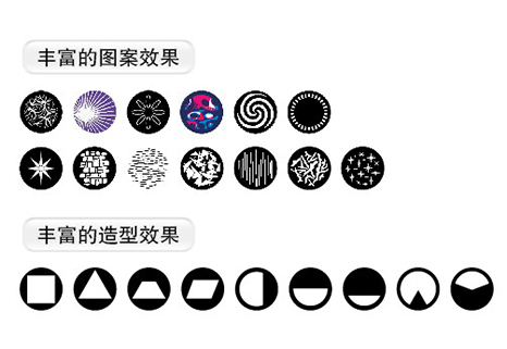 ?可使用金屬圖案片或玻璃圖案片,所有圖案片可供燈光設(shè)計師選擇自己喜好的進(jìn)行替換。